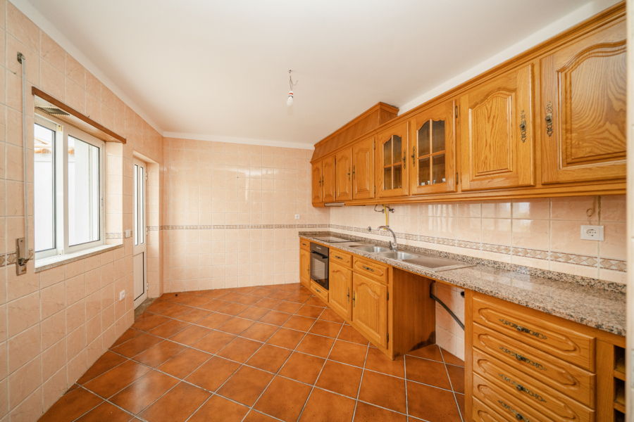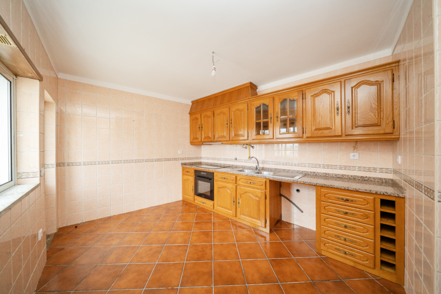 • Cozinha mobilada e equipada com placa, forno, exaustor e esquentador;