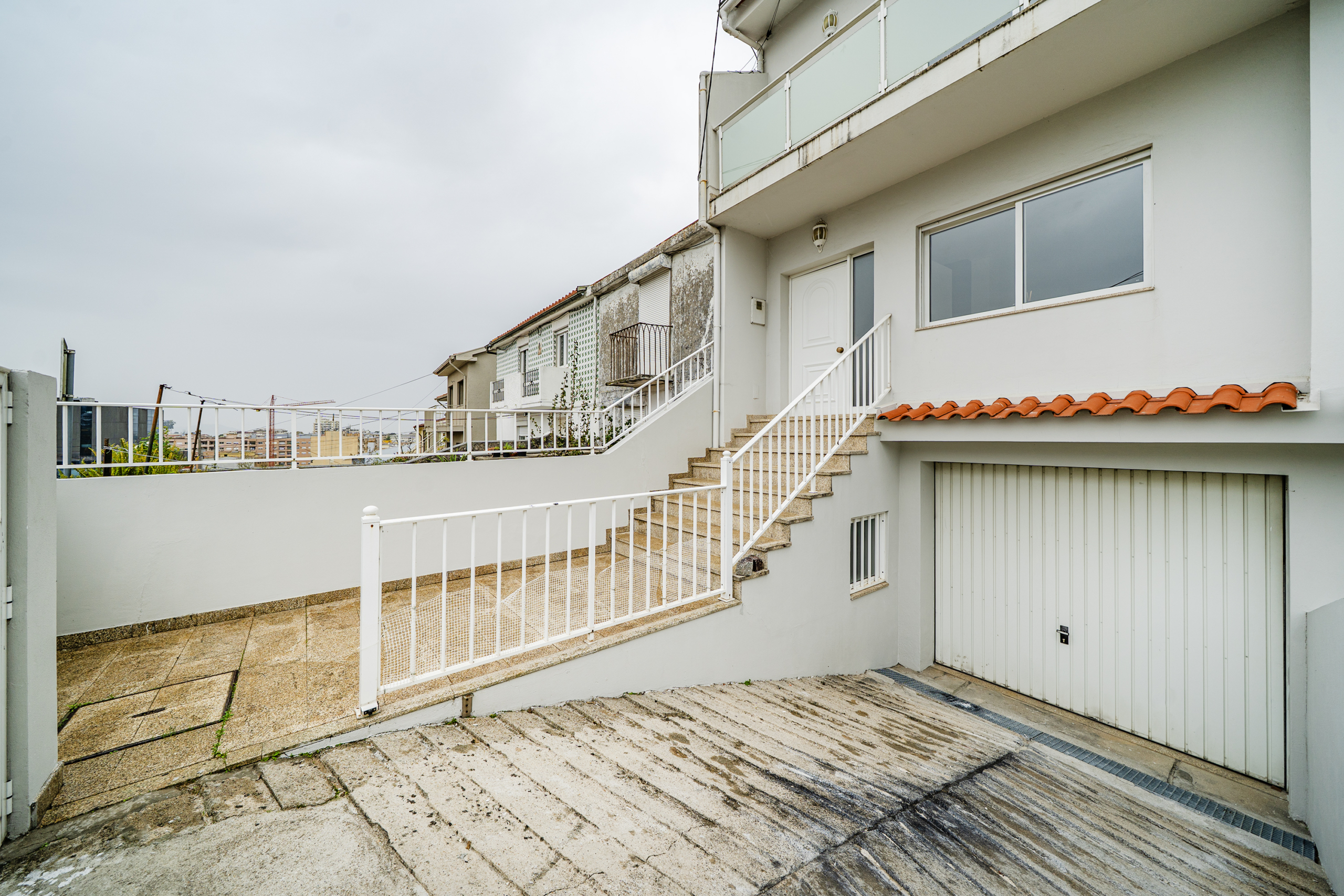 Ao nível da cave, dispõe de uma garagem para 2 carros e espaço para arrumos.